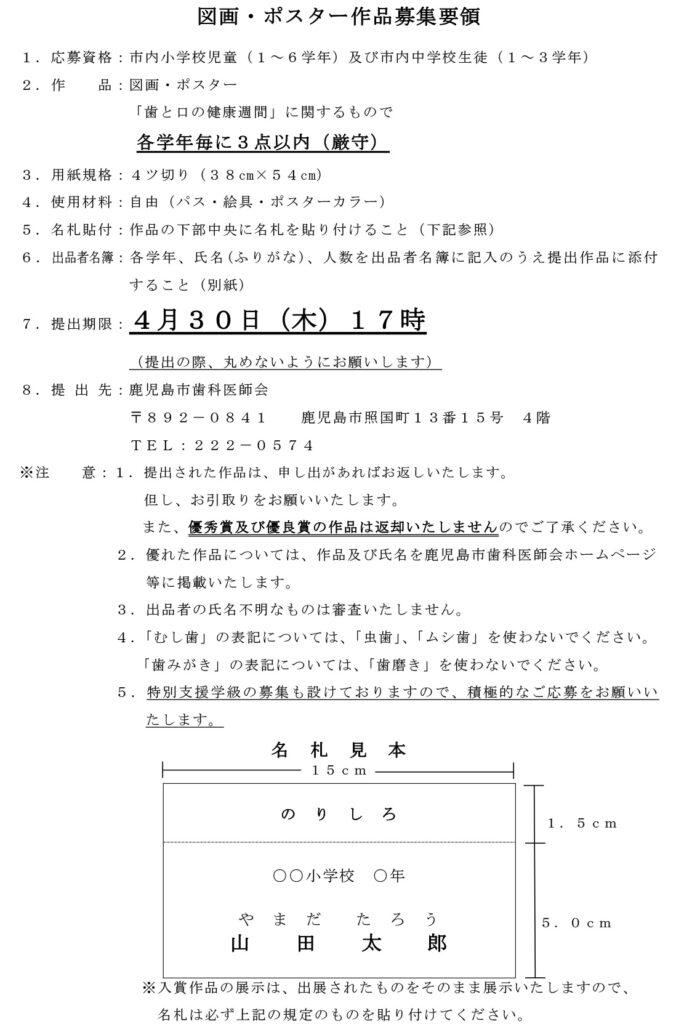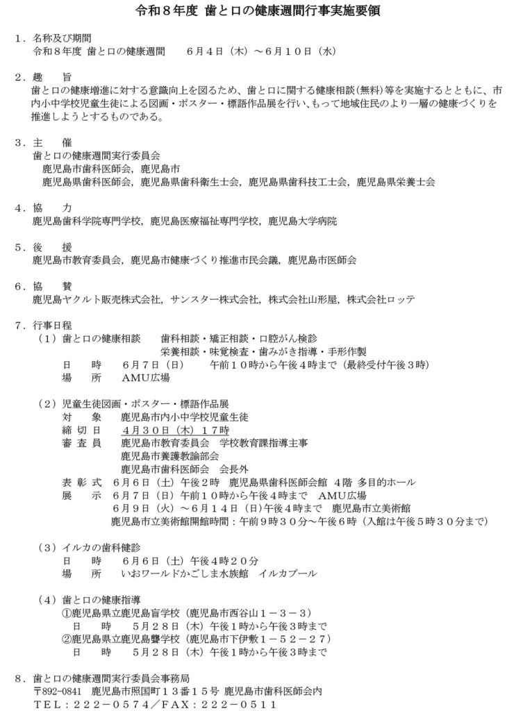 令和8年度歯と口の健康週間事業実施要領及び図画ポスター・標語作品募集について