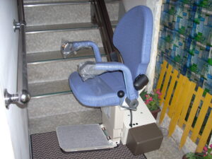 完全バリアフリーではありませんが、ひざの痛い方・脚の不自由な方のために、階段昇降機を設置しました。